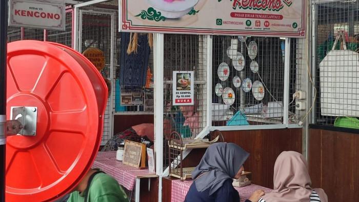 Setelah makanan berat, di lokasi yang sama semangkuk es ini jadi penyeimbang. Perpaduan santan dan gula putih menghadirkan rasa manis yang lembut, dingin, dan menenangkan. “Isian utamanya adalah gempol dan pleret, keduanya berbahan dasar tepung beras. Gempol berbentuk bulat putih, sementara pleret memiliki warna merah muda,” ujar Nurul Pemilik Es Gempol Kencono.